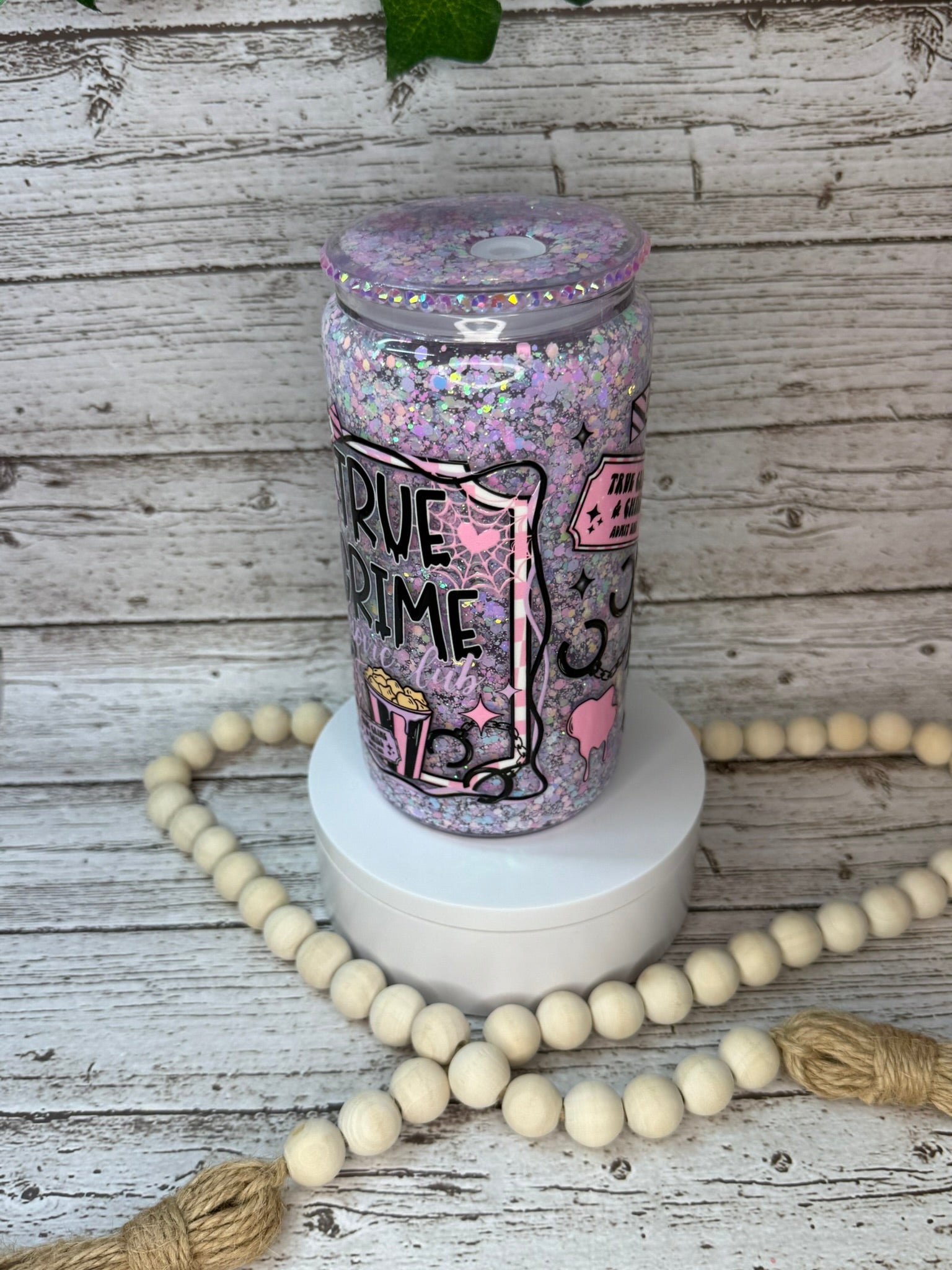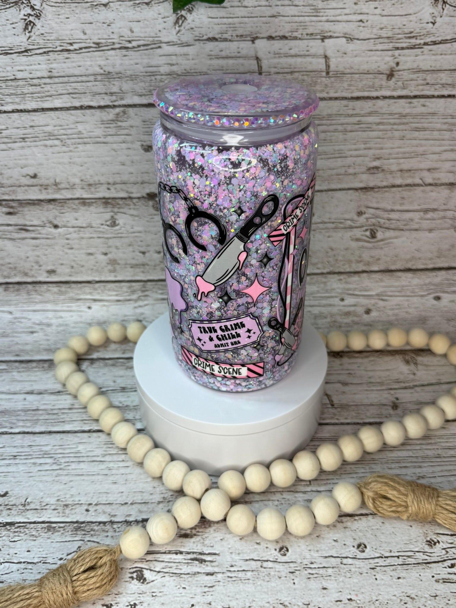 🩷🔪 True Crime Queen – Glitter Snow Globe Glass Cup