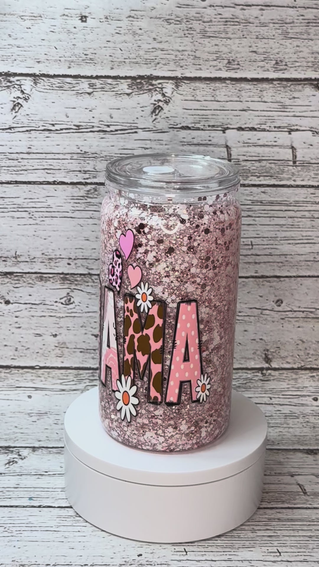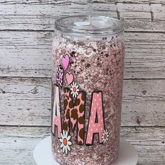 Sip in style with our Mama Glitter Cup, designed to sparkle as bright as you do! This BPA-free double wall cup is filled with shimmering glitter sealed inside the walls for a mess-free sparkle effect. The “MAMA” design features fun mixed prints, hearts, and daisy details, perfect for everyday use or as a thoughtful gift.