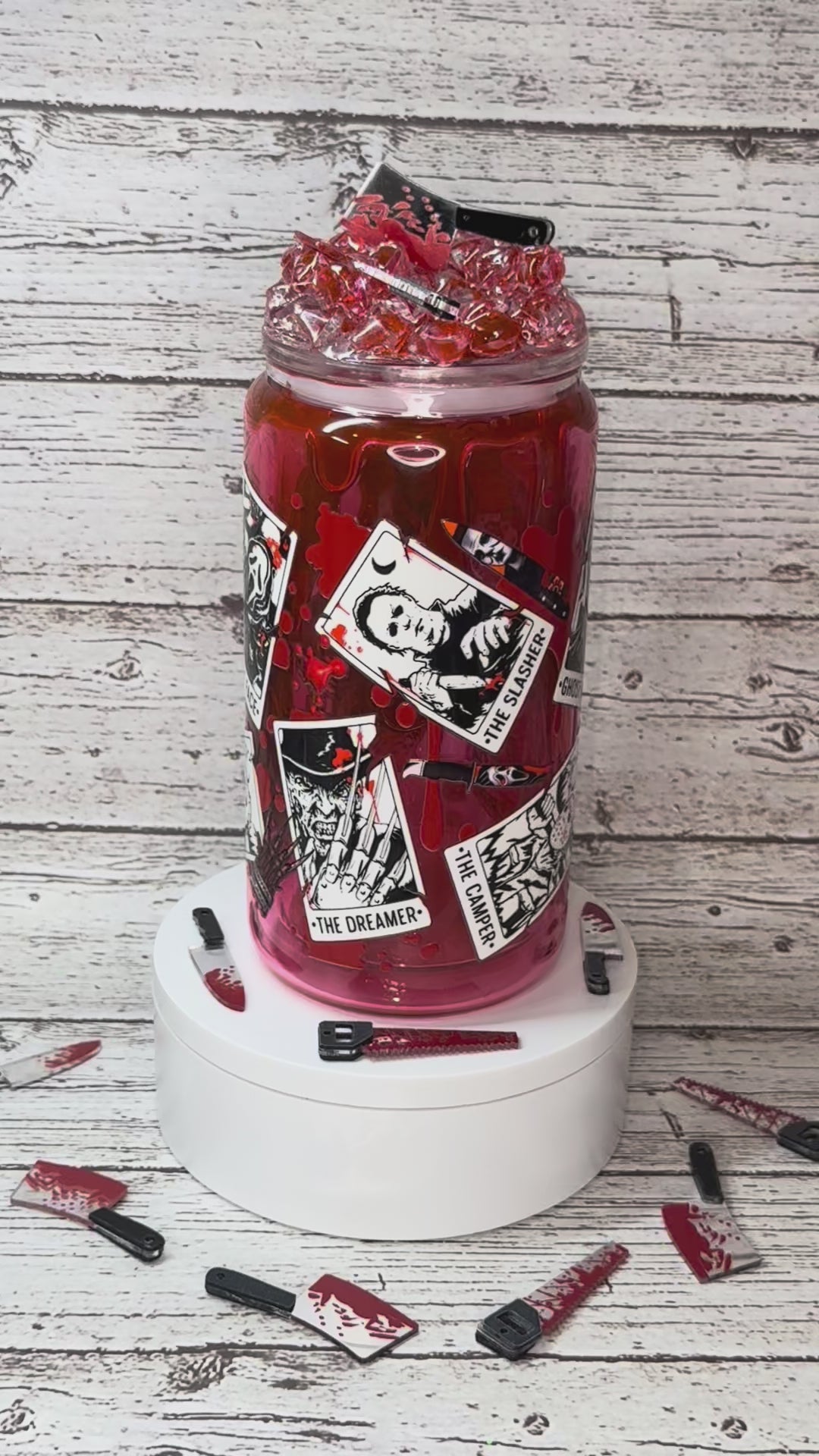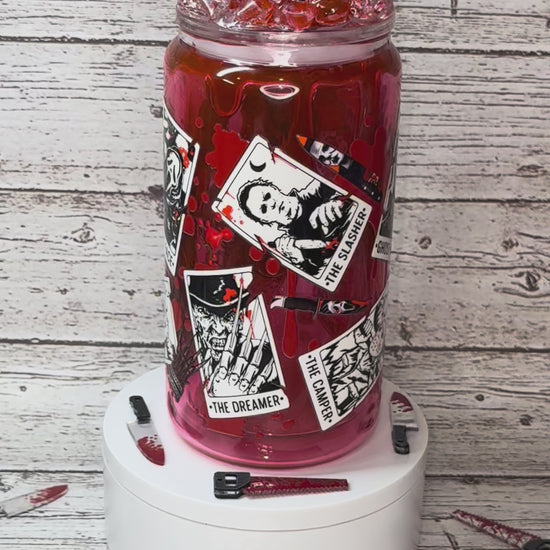 Scary Movie Main Character Glass Cup w/Bloody Ice Lid🔪🩸👻